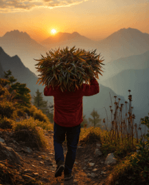 Alle cinque del mattino, quando i primi raggi di sole iniziano a comparire sulle cime innevate dell'Himalaya e le valli sono ancora coperte da una fitta nebbia a causa dell'elevata umidità, il raccoglitore nepalese Mohan Bandhari intraprende con cautela uno stretto sentiero di montagna. Ogni movimento richiede uno sforzo, ma i suoi passi sono sicuri; dopotutto, conosce questo sentiero fin dall'infanzia.