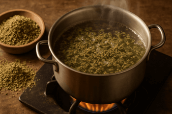 • I decotti di erbe (kvatha) sono il metodo più utilizzato e molto efficace per preparare le piante medicinali. Richiedono di far bollire le erbe in acqua calda a fuoco costante per almeno diversi minuti.